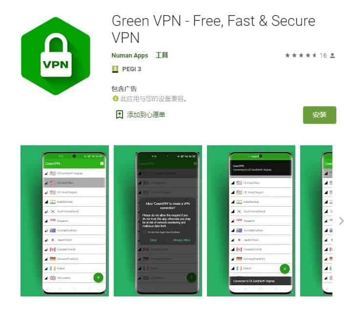 注意:该官网在国内网络中是打不开的,国内所有号称的正版官网的或破解版的下载都有一定风险。而且需要认准正版Green加速器,即使是Google play上也有不少冒充的,比如下面这俩款,都有内置收费速度还不咋地: